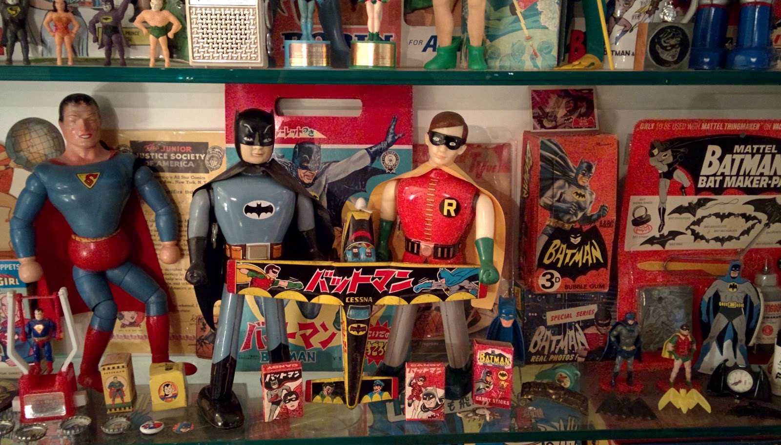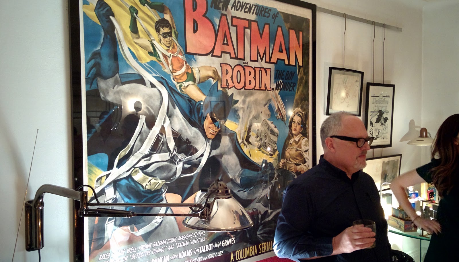 He is also a Batman fanatic; His apartment is covered floor to ceiling with Batman memorabilia, art, toys, you name it!.. Here's a little sampler: